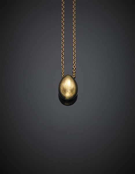Yellow gold chain with pendant egg, g 6.30 circa, length cm 40.80 circa. Signed and marked Pomellato, 469 MI. In original case