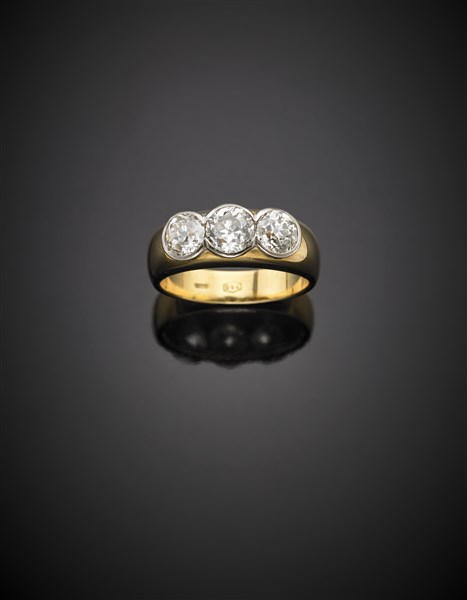 Anello in oro giallo con diamanti old mine per complessivi ct. 2 circa, g 5,40