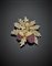 Spilla in oro giallo e bianco con ghiande, rifinita con diamanti e rubini, diam