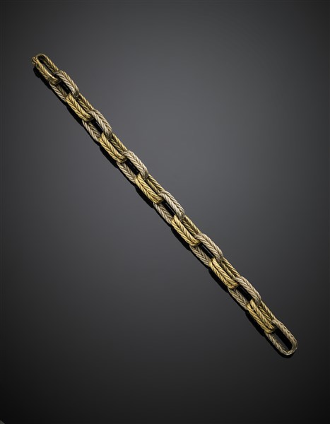 Lot 570 | WEINGRILL Bracciale in oro bianco e giallo a doppi anelli ovali lavorati , g 53