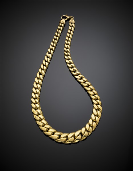 Yellow gold graduated groumette chain necklace, g 56.70 circa, length cm 46.20 circa. Marked and with logo 596 AR, AA.