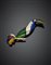 Spilla in oro giallo a guisa di tucano rifinita con smalti guilloché e diamanti per complessivi ct. 0,50 circa, g 17,20 circa, lungh. cm 6,50 circa. Firmato e marcato Fasano, 26 AL. (lievi difetti).