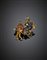 Spilla in oro giallo, gemme e smalti a guisa di dama su risciò, g 11,60 circa,