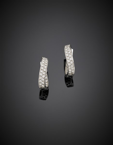 Lot 654 | Orecchini oro bianco e diamanti per complessivi ct. 1,50 circa, g 9,83 circa. M