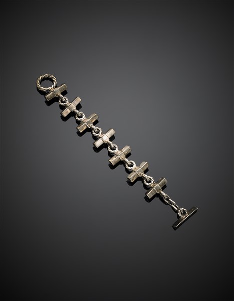 Sterling silver modular bracelet, g 77.80 circa, length cm 19.50 circa. Signed and marked Franzi, 556 FI.