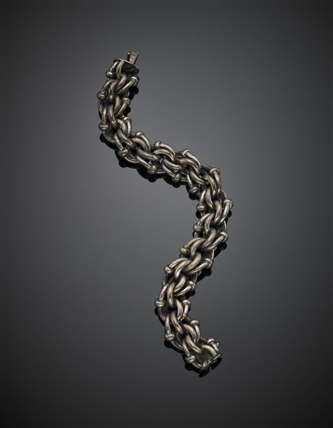 Bracciale in argento 925/1000 a maglia snodata, g 49,50 circa, lungh. cm 20,80 circa. Marcato 9 MI con il Fascio.