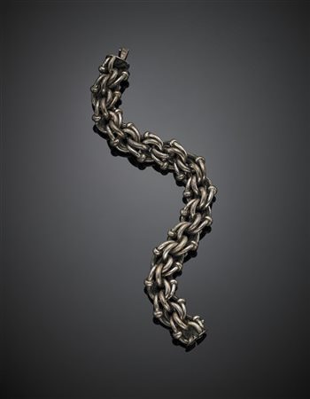 Bracciale in argento 925/1000 a maglia snodata, g 49,50 circa, lungh. cm 20,80
