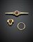 Lotto in oro giallo composto da un orecchino a trifoglio, una spilla con rubino