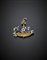 Diamond and carved sapphire chased silver and gold umbrella brooch/pendant, g 7.40 circa, length cm 3.60 circa. (losses)