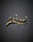 Broche in oro giallo a ramoscello con uccellini in diamanti, smeraldi e rubini,