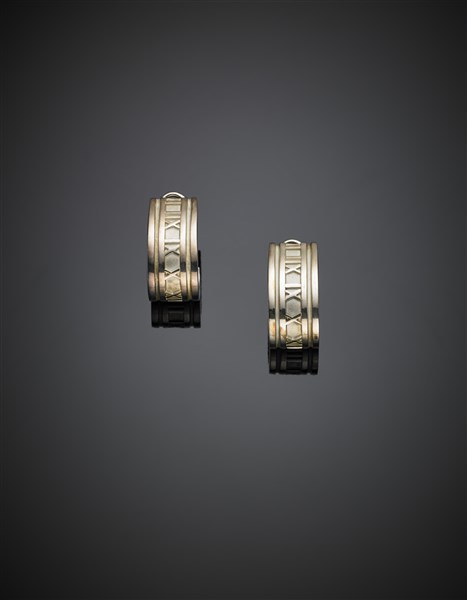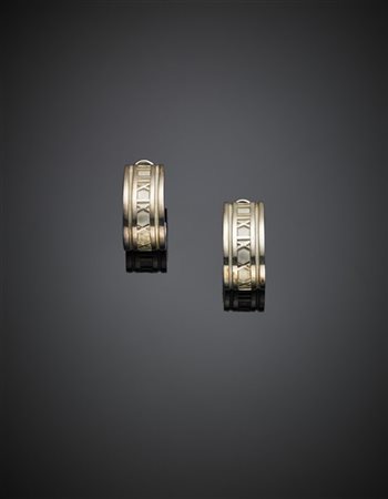 925/1000 silver earclips with roman numbers, g 15.60 circa, length cm 2.40 circa. Signed and dated Tiffany & Co, 1995, 925, Italy. With original pouch