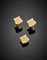 Gemelli e spilla in oro giallo con stemma inciso, stop in metallo, netti comple
