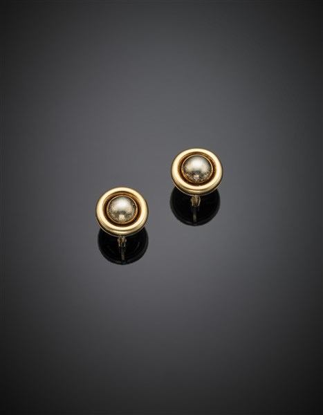 Yellow gold and steel earclips, g 9.50 circa, diam. cm 1.70 circa. (slight defects)