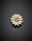 Spilla a margherita in oro giallo e smalto bianco, g 5,20 circa, diam. cm 2 cir