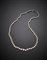 Collana a scalare di perle coltivate da mm 4.15 a mm 8.20 circa con chiusura in oro bianco e pietra verde, g 21,20 circa, lungh. cm 51 circa.