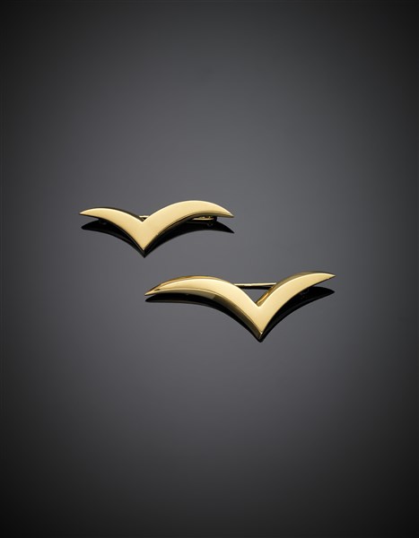 TIFFANY & CO Due spille in oro giallo a guisa di rondini stilizzate di cm 5 e c