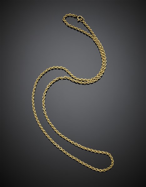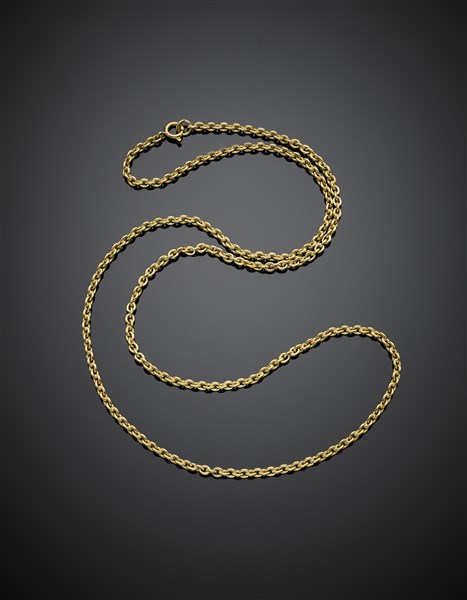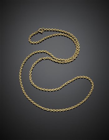 Yellow gold rolò chain, g 34.40 circa, length cm 72 circa. Incomplete italian mark. With pouch