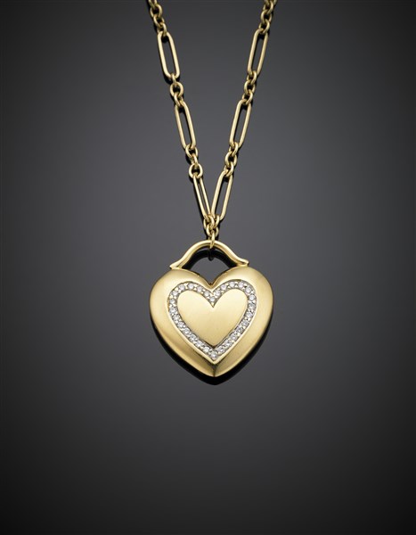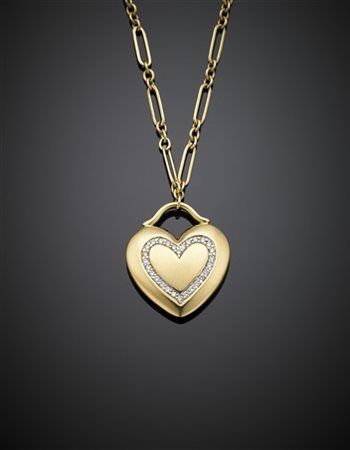 Yellow gold chain with cm 2.20 circa heart central accented with diamond, g 19 circa, length cm 46.30 circa. Chain and central marked Tiffany & Co, on the chain 1980 MI.