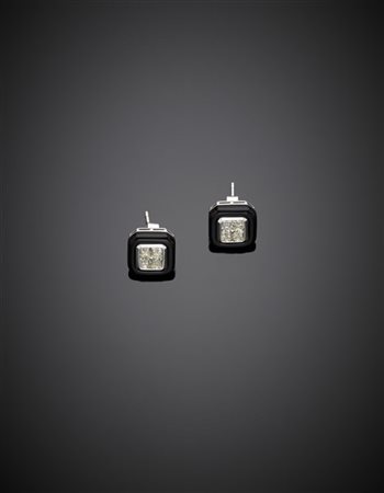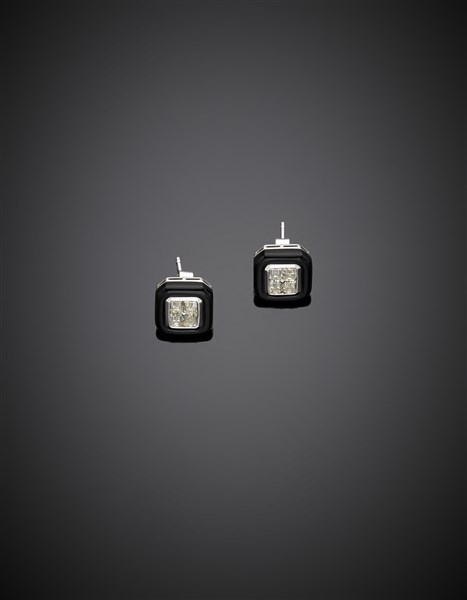 Baguette diamond and onyx white gold earrings, in all ct. 1.20 circa, g 3.26 circa, length cm 1.10 circa.