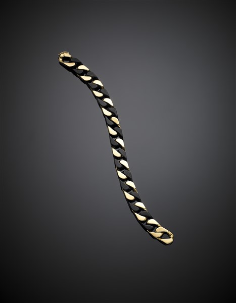 Yellow gold and onyx chain bracelet, g 48.80 circa, length cm 19.50 circa.