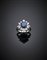 Anello in oro bianco con zaffiro a cuscino di ct. 2,40 circa e diamanti rotondi