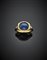 Anello in oro giallo con zaffiro cabochon di ct. 4,80 circa con due diamanti ta