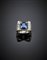 Anello in oro giallo con zaffiro centrale di ct. 5 circa rifinito con diamanti rotondi e carré per complessivi ct. 4 circa, g 15,80 circa misura 17/57.