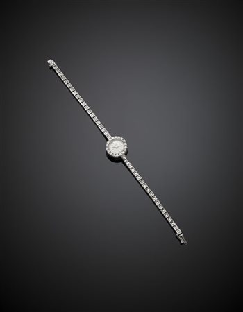 White gold diamond lady's wristwatch and his own bracelet with spare links, g 21 circa, length cm 16.80 circa. Case, dial and bracelet clasp signed, on the case n° 202-656, on the clasp n° 528, 3168.