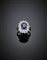Anello in oro bianco con zaffiro ovale di ct. 2 circa, diamanti rotondi, a nave