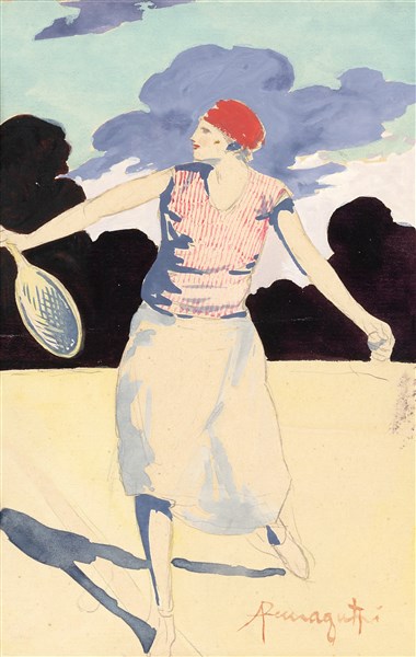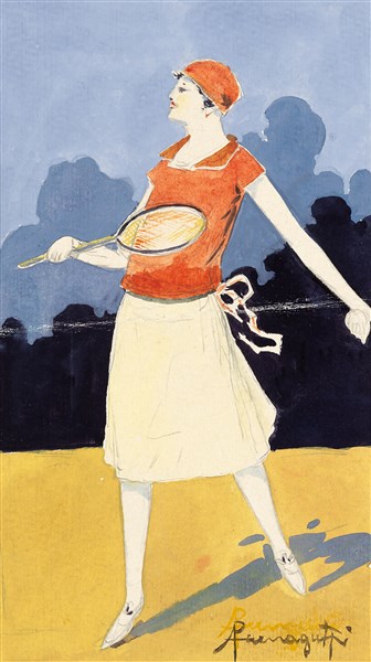 Arnaldo Ferraguti "Le tenniste" coppia di tecniche miste su carta (cm 16x10,5)