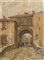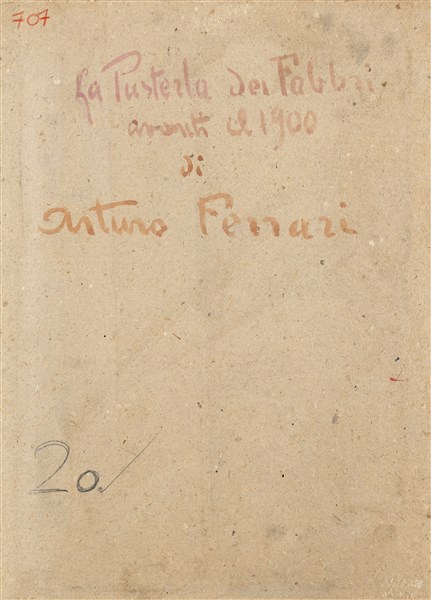 Arturo Ferrari "La Pusterla dei Fabbri avanti il 1900" olio su cartone (cm 34,5