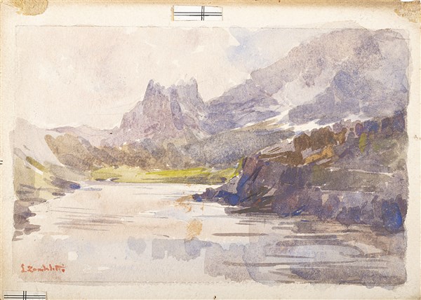 Lodovico Zambeletti "Courmayeur, Lago di Combal" acquerello su carta (cm 11x16)