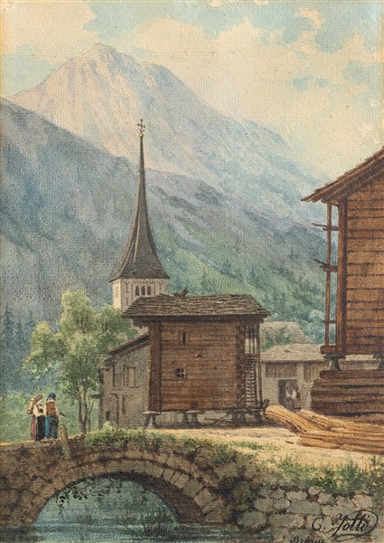 Carlo Jotti "Briga" acquerello su carta applicata a cartone (cm 29x20) Firmato