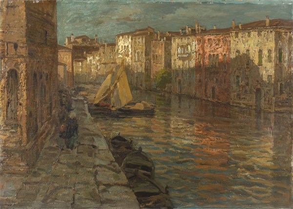 Francesco Sartorelli "Canale in laguna" olio su cartone (cm 61x82) Al retro: ca