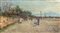 Lot 1223 | Attilio Pratella "La passeggiata" olio su tavola (cm 17,5x32) Firmato in basso