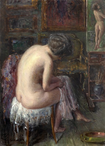 Giovanni Gaetano Galeazzi "La modella" olio su tela (cm 70x50) Firmato in basso