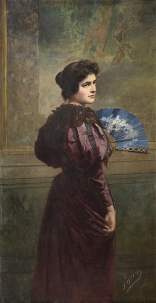 Luigi Sorio "Il ventaglio" olio su tela (cm 150x80) Firmato in basso a destra I