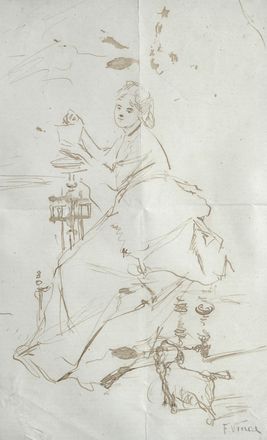 Attr. a Francesco Vinea Dama con cagnolino China su carta, cm. 21x13 Firma in basso a destra.