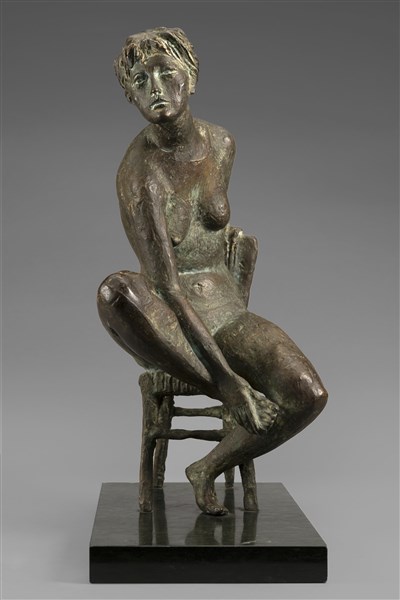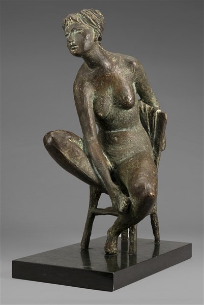Eros Pellini "La modella" scultura in bronzo (h cm 32) poggiante su base in mar