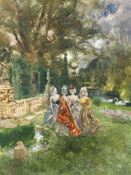 Pompeo Mariani "Nel parco" 1910 olio su cartone (cm 98,5x72,5) Firmato, datato e