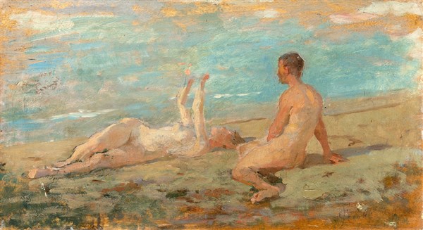 Francesco Gioli "Invocazione al sole" olio su tavola (cm 22x39,5) Firmato in ba