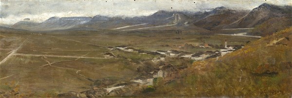 Guglielmo Ciardi "Altopiano di Asiago" 1898 olio su tela (cm 20x60) Firmato e da