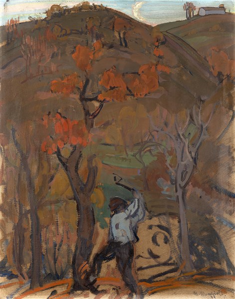 Umberto Moggioli "La Valletta nel veronese" olio su cartone (cm 64x48,5) Firmat