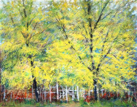 CASCELLA Michele, Senza titolo anni 70 (1970 - 1979) pastelli ad olio su cartoncino cm. 80 x 100, . Autentica dell'artista su fotografia. Firma "Michele Cascella" (in basso a sinistra)