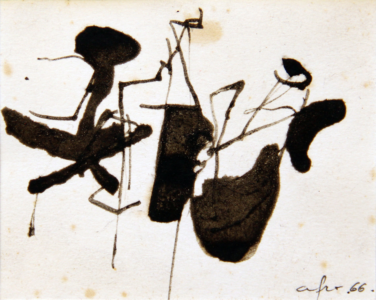 AFRO Basaldella, Senza titolo 1966 tecnica mista su carta cm. 8.7 x 10.5, . Autentica dell'Archivio Afro su fotografia con n° 00C392 in data 07/10/2004. Firma, data "Afro 66" (in basso a destra)