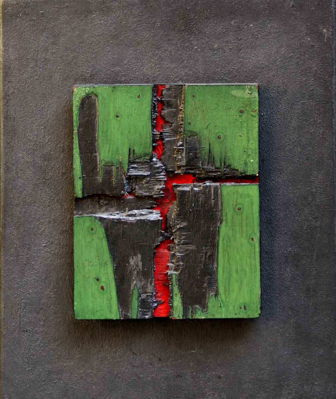 FABBRI Agenore, Senza titolo 1964 assemblaggio di legno e tecnica mista su tavola cm. 45 x 36.5, . Autentica del figlio su fotografia . Firma, data "A.Fabbri, 64" (al retro)