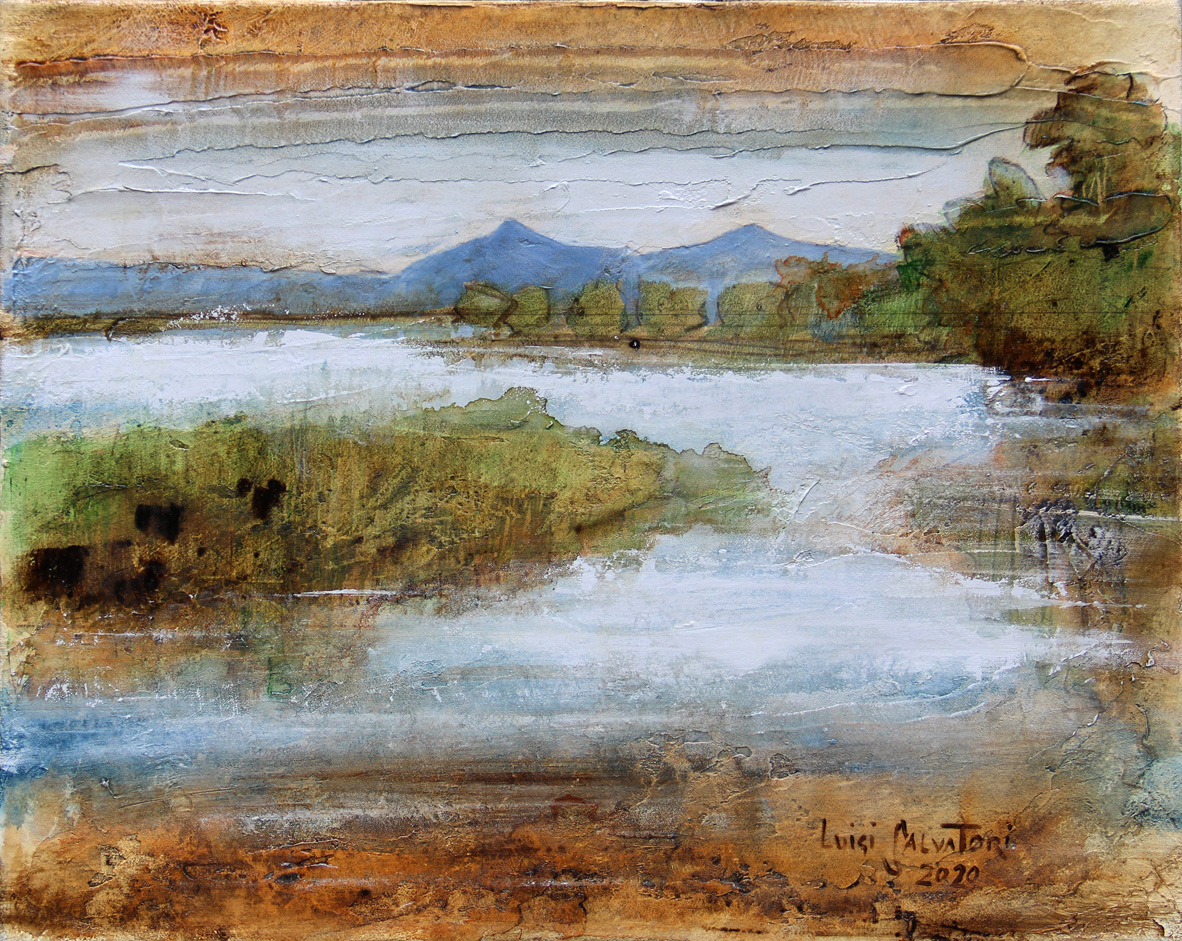 SALVATORI Luigi, Le acque sorgive del laghetto di Fibreno 2020 olio su tela cm. 40 x 50, . Autentica dell'artista su fotografia. Firma, data "Luigi Salvatori, 2020" (in basso a destra)