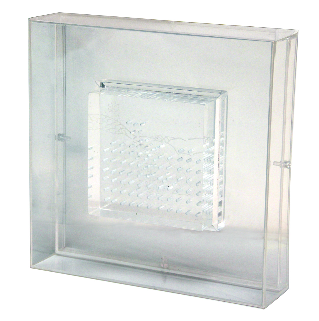 LA PIETRA Ugo , Strutturazioni tissurali. Compenetrazione 18 1966 blocco di metacrilato lavorato a freddo cm. 12 x 12 x 4, "Ugo La Pietra - Strutturazioni tissurali", Silvana Editoriale, p. 57 . Autentica a cura dell'Archivio Ugo La Pietra, con n. AUT_16-016. Firma, data "U. La Pietra, 66" (in basso al centro)