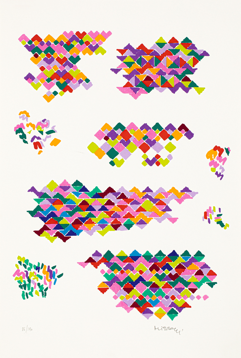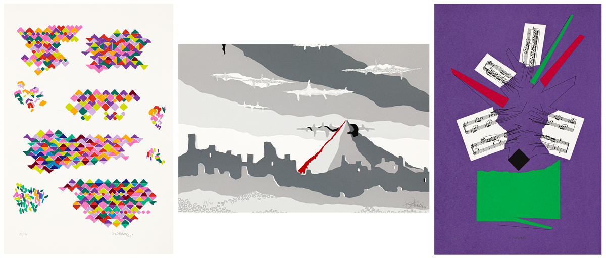 Cartella contenente colophon di presentazione e 3 serigrafie di Ottavio Missoni, Bruno Munari e Renzo Fadini, ciascuna recante firma e numerazione (Esemplari 86/190) a matita al fronte