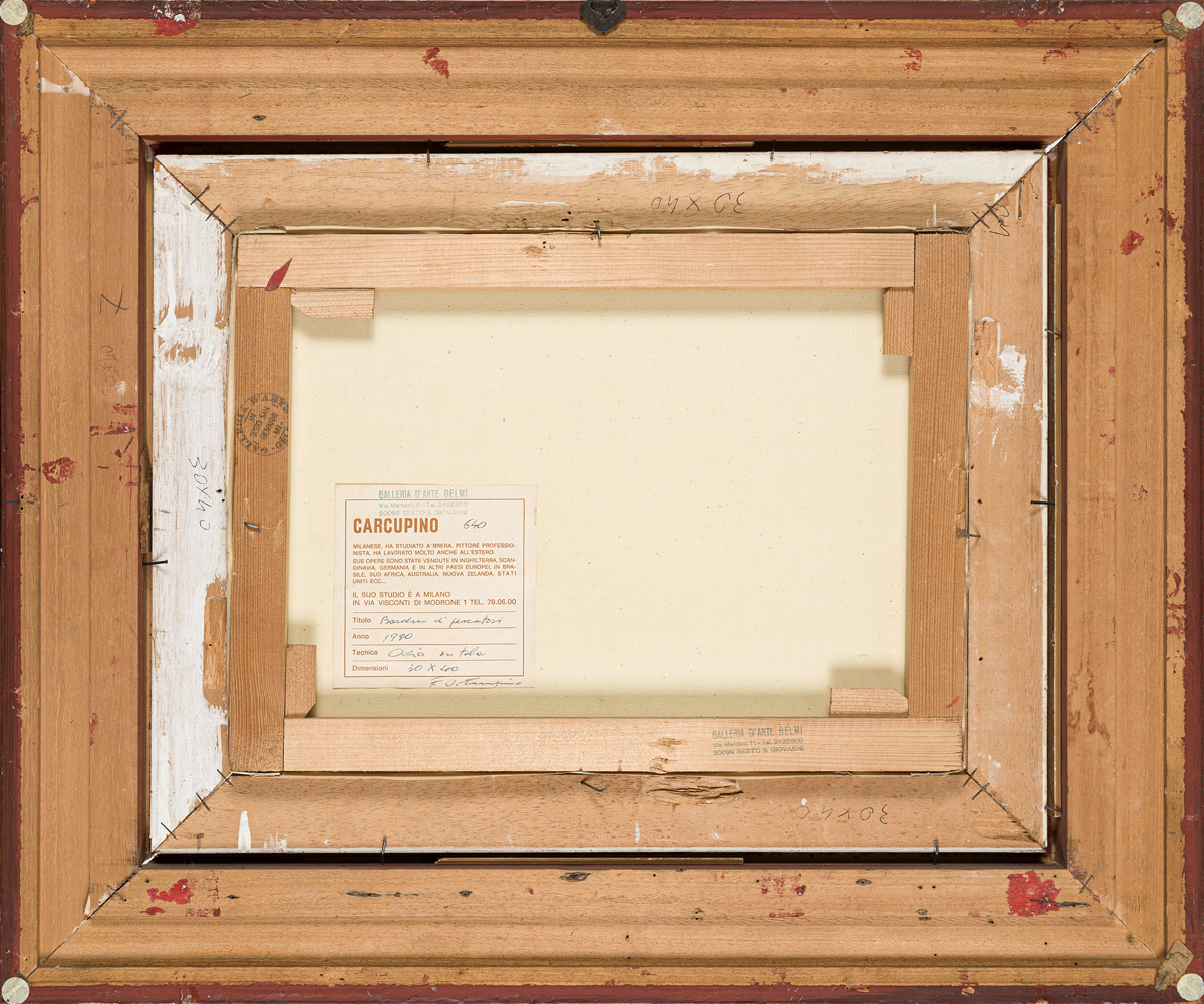 Etichetta dell'Artista e timbri della Galleria d'Arte Gelmi (MI) al retro